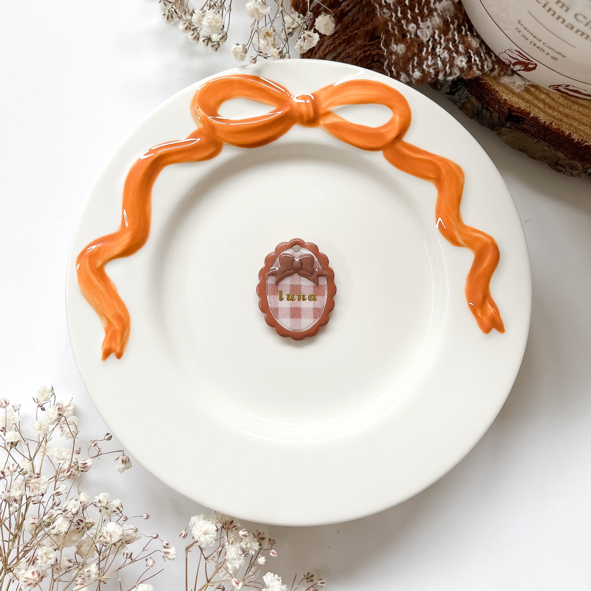 ✽ Safety & Care | Pet ID tags are choking hazards so please make sure you are monitoring your pet while they are wearing their ID tag. Keep your pet’s ID tags away from children and your pet when not being worn. UV resin is applied on top of the clay tag after baking (also known as glaze), resin may discolor over time but try to store tags out of direct sunlight.